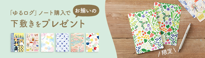 対象の「ゆるログ」ノートをご購入で、オリジナル下敷きをプレゼント中!