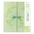 幸運の四つ葉のクローバー柄。リボンが人気の両開き色紙。