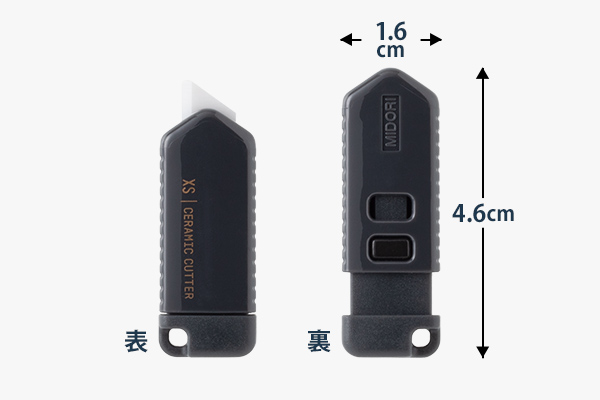 本体サイズは縦4.6cm×横1.6cm!刃を収納するときは、背面のボタンを押すだけでワンタッチで収納できます。
