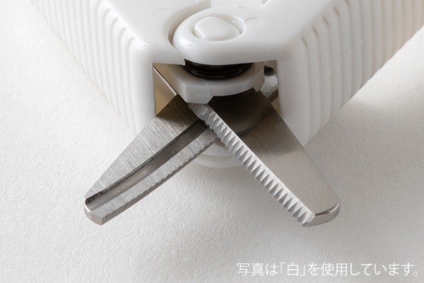 携帯性とカット性能を追求した、極小サイズのギザ刃仕様のハサミです。さまざまな素材に対して刃が滑りにくく、しっかりと食い込んで切ることができます。