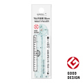 開くと16cmまで測れるコンパクトな定規。折りたためばペンよりも短く、ペンケースの中でかさばりません。10mmごとに穴があいているので、印をつけるのに便利です。