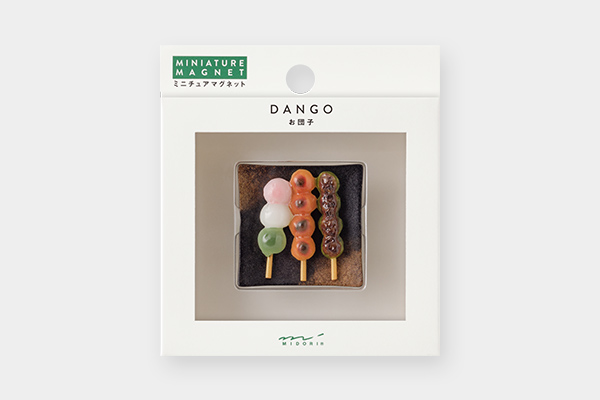 【お団子柄】三色団子、みたらし団子、あんこの団子の3本が繊細な作りで再現されています。