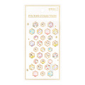 「STICKER COLLECTON」のレジンシールは、透明樹脂(レジン)でぷっくり膨らんだ、透け感がきれいなシールです。立体的でシンプルな形に、樹脂の透明感を活かしたパターンを合わせました。