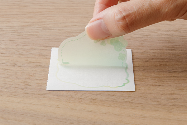 半透明のシールはミシン目にそって1枚ずつ切り取って配ることができます。※記入する際の筆記具は細い油性ペンをおすすめします。〈推奨インクカラー: 黒〉