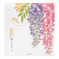 花びら部分に、細く繊細に輝く金色のシルク印刷を施し、風に揺れる満開の藤の花を表現しました。