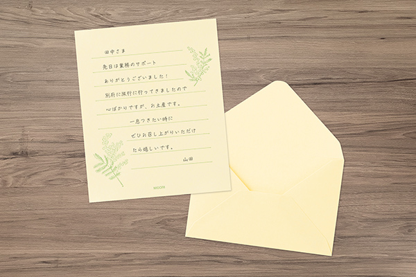 | サイズ | パッケージ/H120×W108×D5mm 便箋/H110×W91mm 封筒/H63×W96mm |
