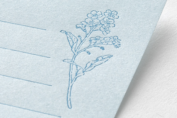 便箋は書き心地にもこだわり、活版印刷で趣のある仕上がりとなっています。自社工場の職人が1枚1枚丁寧に印刷しており、繊細な花の絵柄が引き立ちます。