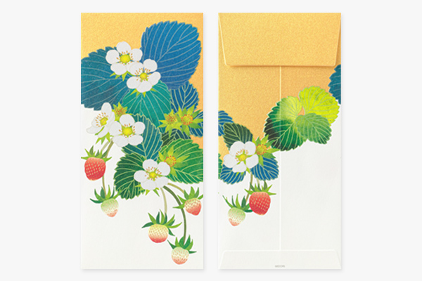 上品な和紙の質感と、日本の四季を感じるデザインが人気の「紙シリーズ」。風合いのある越前和紙に、苺が大胆に描かれた多目的封筒です。