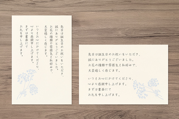 特にリース状のデザイン(ピンク、青)は、ひとこと添えるだけでも寂しくならないようデザインしているので、カード感覚で気軽にお使いいただけます。