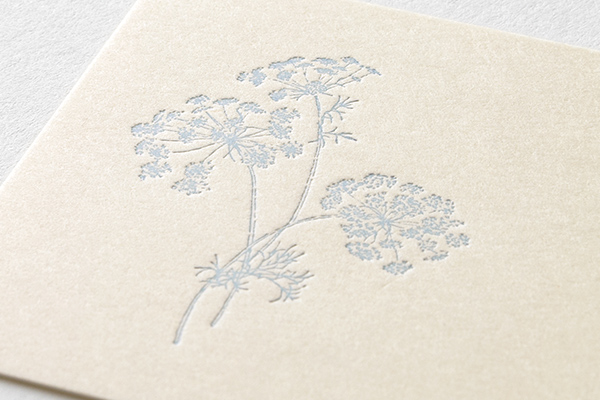 金属凸版を用いて印刷することで独特の風合いを持ち、温かみが感じられる印刷方法です。