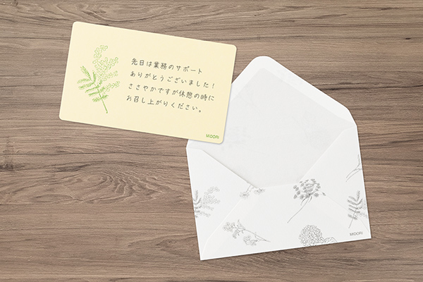 ミニカードは花が一輪添えられているようなデザインなので、一言書くだけで、すてきなメッセージギフトに。