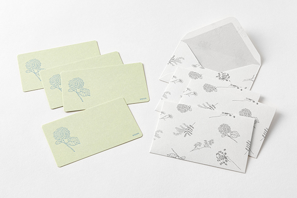 ミニカードは書き心地にもこだわり、活版印刷で趣のある仕上がりとなっています。自社工場の職人が1枚1枚丁寧に印刷しており、繊細な花の絵柄が引き立ちます。