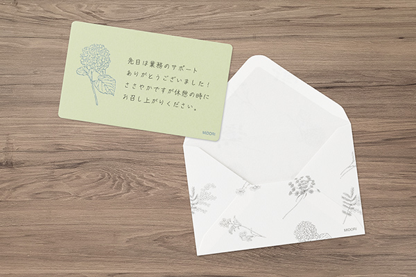 ミニカードは花が一輪添えられているようなデザインなので、一言書くだけで、すてきなメッセージギフトに。