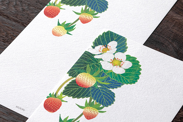 「紙シリーズ」は、伝統素材の風合いの良い和紙に四季折々の花々と季節のうつろいを大胆な構図でデザインした、季節の便りです。ふだんのお手紙やお礼状などにご活用ください。