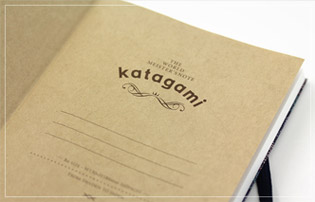 もう一つのこだわり ロゴとクラフト紙 表紙を開くと、スウェーデン国内でよく見かけるフォントを使用したロゴとタイトルなどが書ける罫線を設けたクラフト紙のページが現れます。