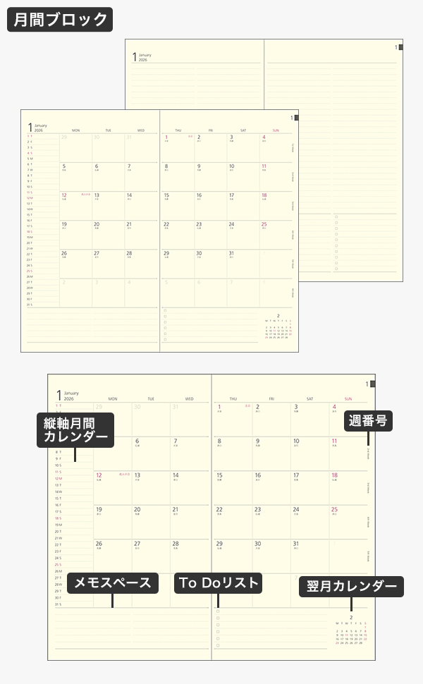 ・【月間ブロック】+【週間バーチカル】メモページ18ページ