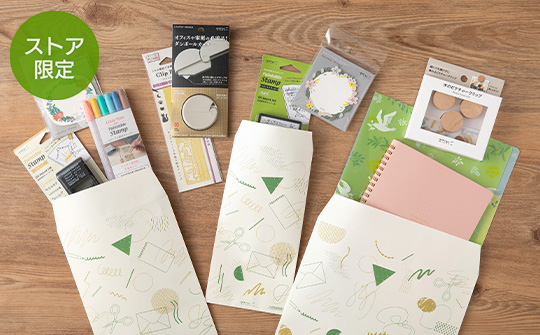 ミドリの文房具をモチーフとしたオリジナルデザインの小分け袋を無料でご注文商品に同梱いたします。