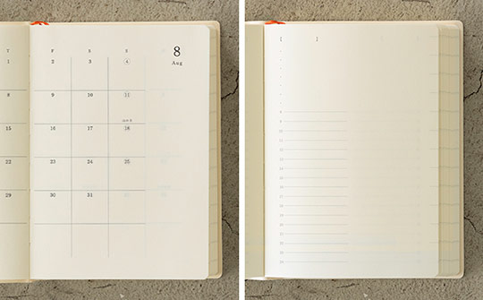 にじみや裏抜けがしにくく、書き味が良い筆記適性を追求した紙「MD用紙」が本文に使われており、「書く」ことを愉しみながら日々の予定や記録ができます。