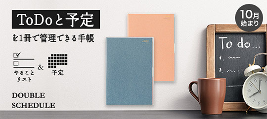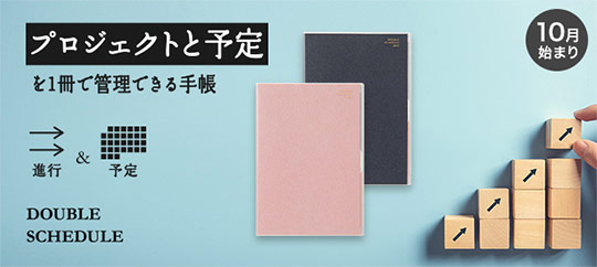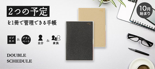 「プライべート」と「仕事」など2つの予定を1冊で管理できる、検索性抜群のスタンダードな「ダブルスケジュール」