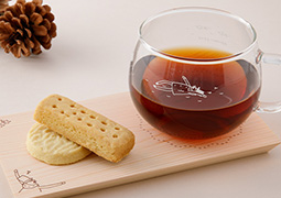 耐熱ガラスのマグカップと木製トレーの「オジサン」ティータイムセット