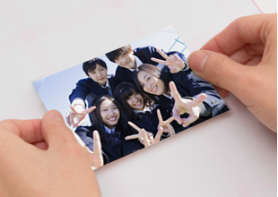 フォトコーナーシールを写真の4つ角に取り付けたら、色紙の好きな位置に貼付けます。 寄せ書きを書き込んで、写真付き色紙の完成!