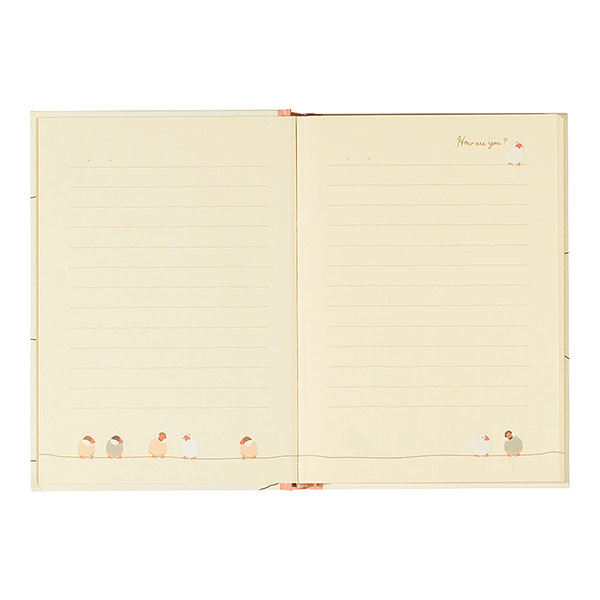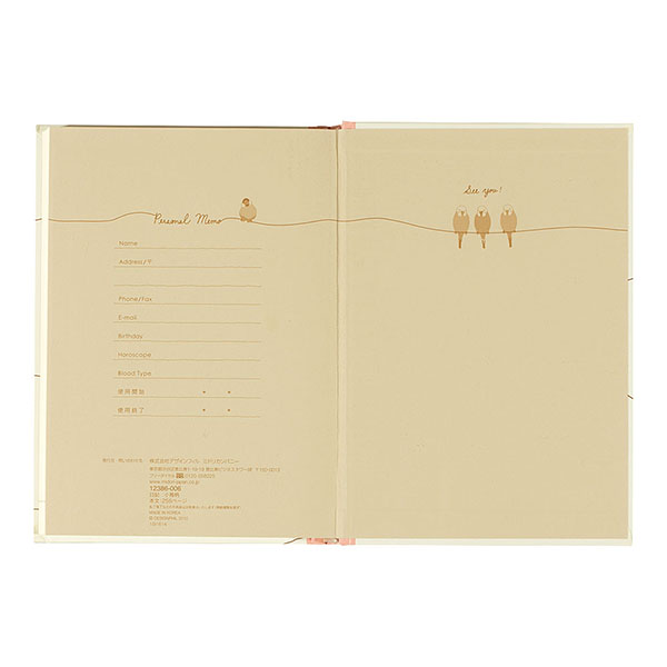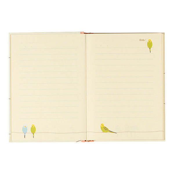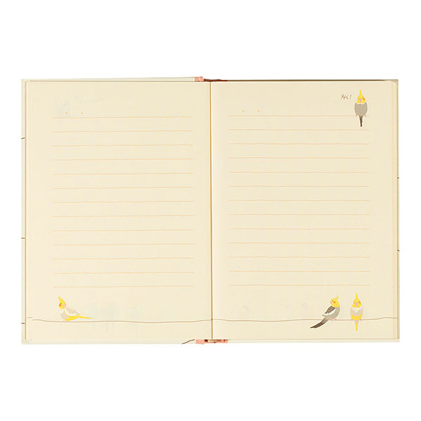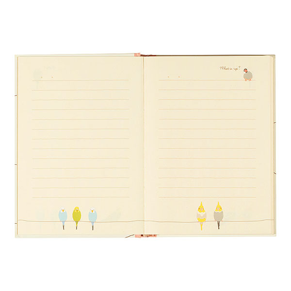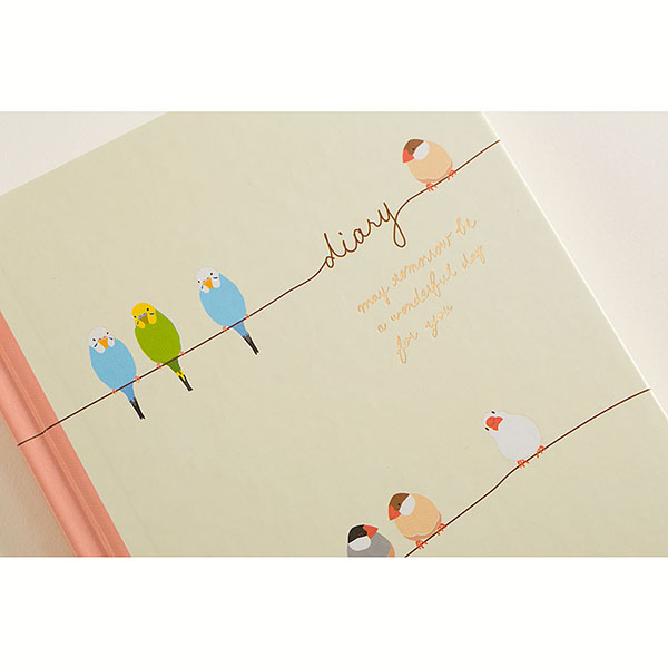 文鳥、セキセイインコ、オカメインコなどの可愛い小鳥たちのイラストが入った中紙。書き進めるうちに変わるので、日記を続けるのが自然と楽しみに!