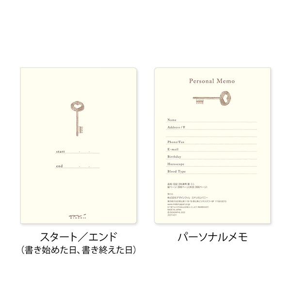 日記に使用している紙は、にじみや裏抜けがしにくく書き味の良さを追求した「MD用紙」。製本は開きやすさと丈夫な仕上がりが特徴の「糸かがり綴じ」を用いています。