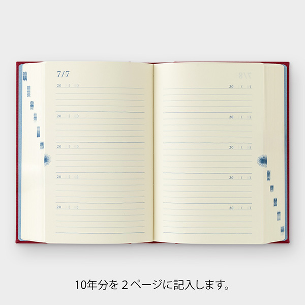 | 内容 | 本文/「MD用紙」(クリーム) 732ページ(横罫) 罫幅6mm 付録(13ページ) しおりひも2本付き 表紙/布貼り、金箔押し 製本/糸かがり綴じ |