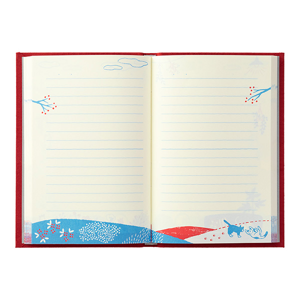 見開きで4柄、ページをめくるごとに景色が変わるイラストは、ポジティブに前進している気持ちや、旅をしている気持ちを感じられるデザインです。