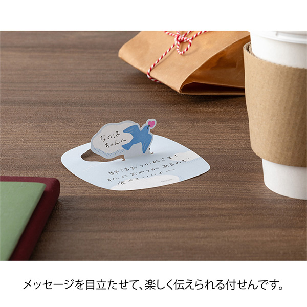 モチーフ部分(付せんの抜き部分)を立ち上げて、デスクの上などで目立たせられる付せんです。