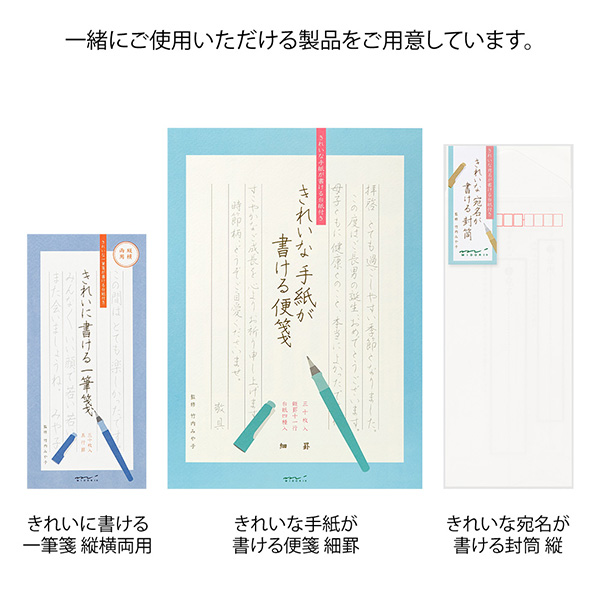 一緒にお使いいただける「きれいに書ける一筆箋 縦横両用(89490006)」「きれいな手紙が書ける便箋<細罫>」をご用意しております。