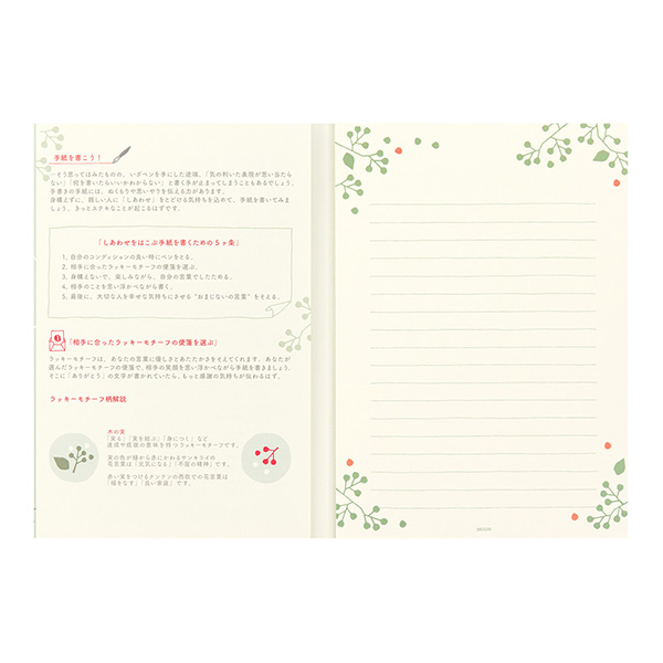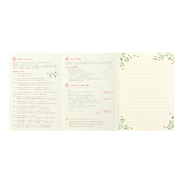 表紙を開いた左ページには、季節のあいさつやおまじないの言葉など、手紙を書く時に参考になるテキストがついています。