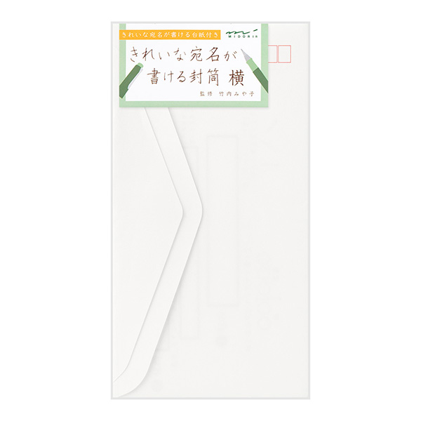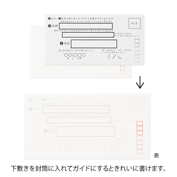 付属している「秘密の下敷き」を使って、だれでも簡単にきれいな住所、宛名を書くことができる封筒です。