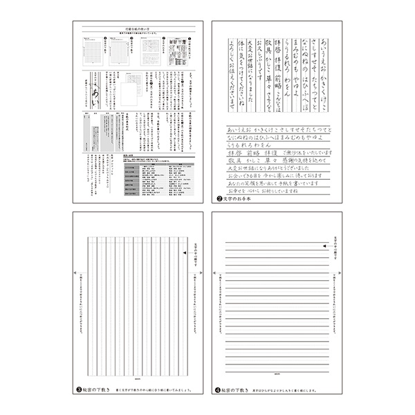 | サイズ | H250×W177mm×D5mm | 付録 | 付録台紙の使い方、秘密の下敷き(縦罫/横罫)、文字のお手本 |