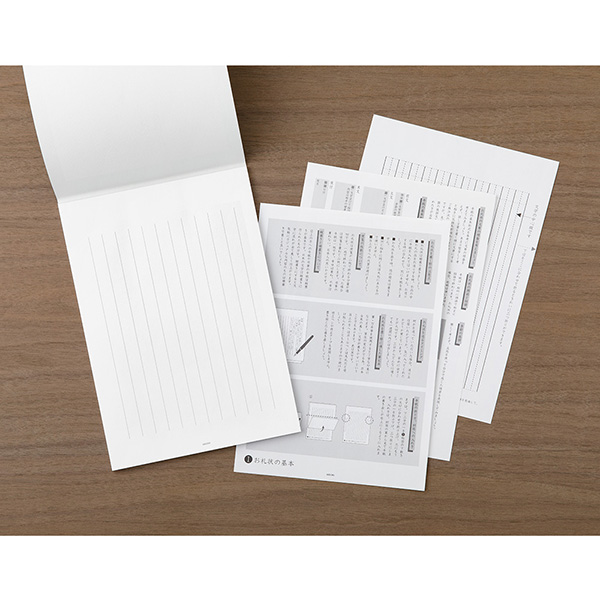 ビジネスからプライベートまでお使いいただける「お礼状」のための便箋。「秘密の下敷き」のほか、お礼状の基本、お礼の文例や文字のお手本も付いており、ヒントが満載です。