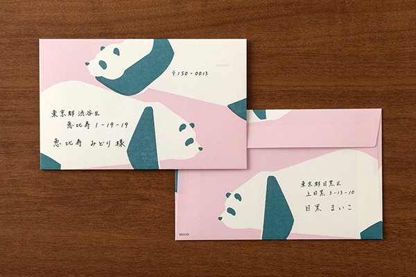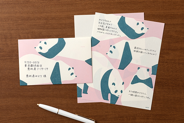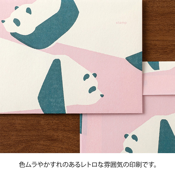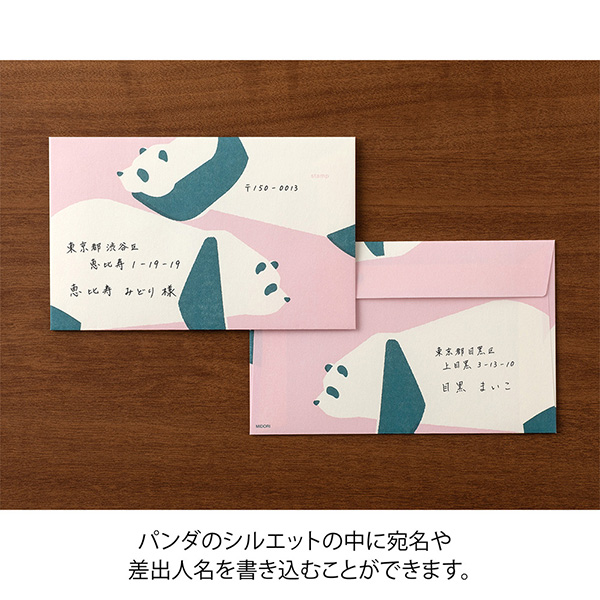 ちょっぴりラフなタッチで描かれたパンダの絵柄の封筒です。