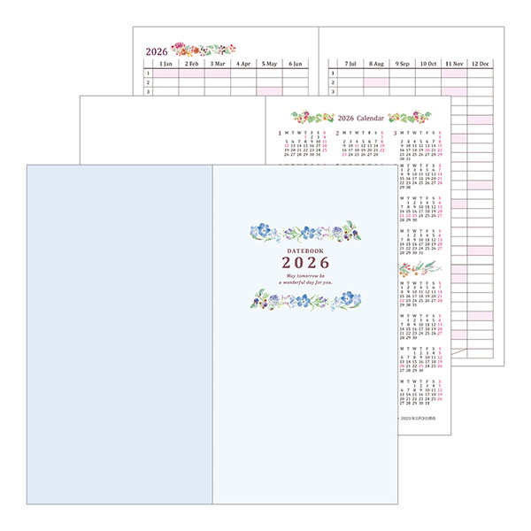 | 内容 | 年間カレンダー、年間スケジュール、 月間スケジュール(2026年1月~2027年3月※15ヵ月分)、 メモ(9ページ/横罫)、 マイメモリーズ、パーソナルページ 「六曜」表示有 ※2025年版より地下鉄路線図をなくし、1年の思い出や印象に残ったことを書き出せる「My Memories」ページを追加しています。 |