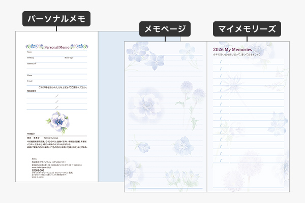 メモページにはその年の出来事や印象に残ったことを書き込める「マイメモリーズ」が付いています。