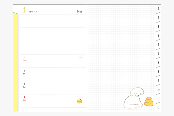 2026年版も月間スケジュールの始まり月が1月に、終わり月は翌年3月に変更になり、年度末までの予定が管理できるようになっています。