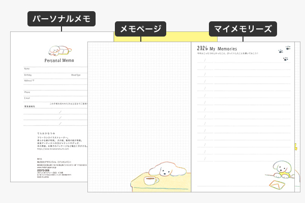 メモページにはその年の出来事や印象に残ったことを書き込める「マイメモリーズ」が付いています。