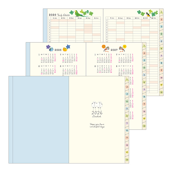 | 内容 | 年間カレンダー、年間スケジュール、 月間スケジュール(2026年1月~2027年3月※15ヵ月分)、 週間スケジュール(2026年1月~2026年12月※12ヵ月分)、 メモ(29ページ/横罫)、 マイメモリーズ、パーソナルページ ※2025年版より地下鉄路線図をなくし、1年の思い出や印象に残ったことを書き出せる「My Memories」ページを追加しています。 |