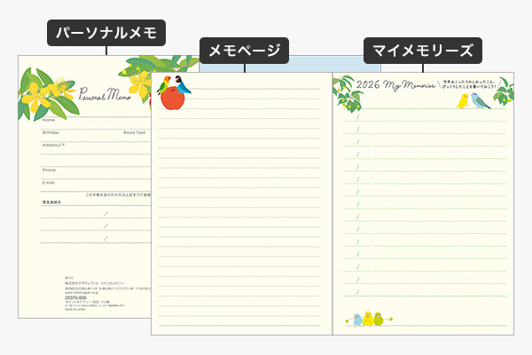 メモページにはその年の出来事や印象に残ったことを書き込める「マイメモリーズ」が付いています。