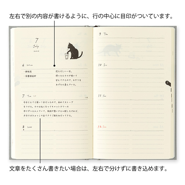 生粋の猫好きであるイラストレーター、小泉さよさんによって描かれた「ネコ柄」は、「黒猫との暮らし」をテーマにしたイラストを毎ページ楽しめる、猫好きにはたまらないデザインです。