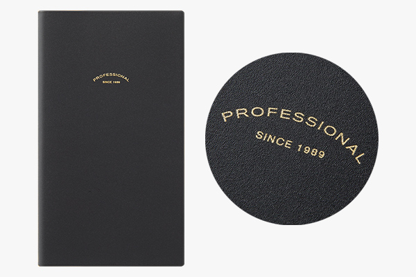 ダイアリーカバーは、マットな質感がスタンダードで使いやすい「黒」。シックな表紙に金箔のロゴが映える、男女問わず使えるシンプルで上品なデザインです。