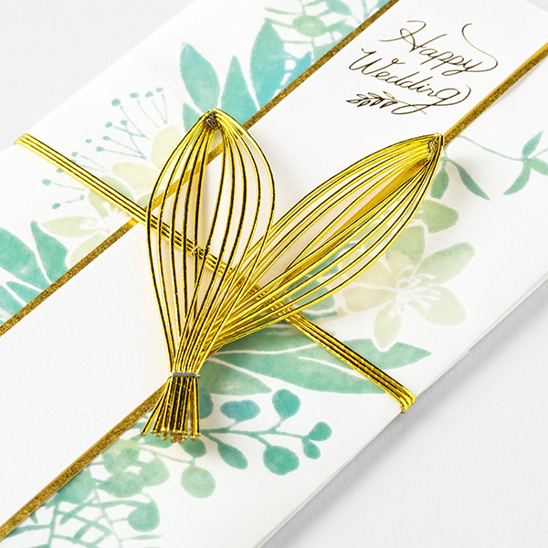 自然な樹々や太陽を身近に感じながら行うガーデンウェディングをイメージさせる草花が、ほんのり透けてのぞく祝儀袋です。