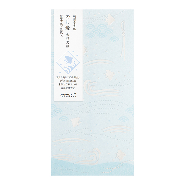 吉祥文様である「波千鳥」の柄に、上品に輝くパール箔をあしらったのし袋です。お祝いやお礼などの幅広い用途でお使いいただけます。