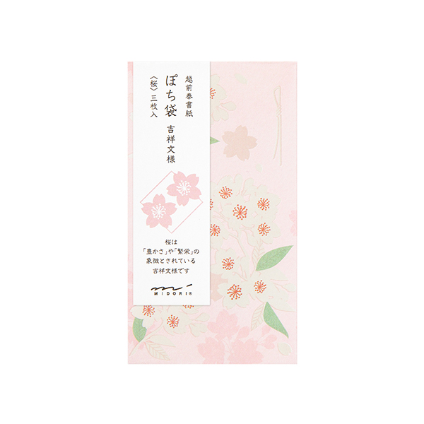 吉祥文様である「桜」の柄に、上品に輝くパール箔をあしらったぽち袋です。お祝いやお礼などの幅広い用途でお使いいただけます。