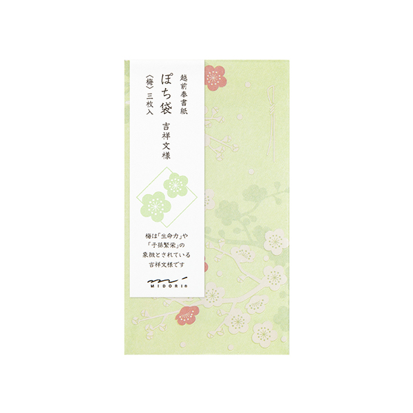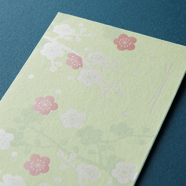 吉祥文様である「梅」の柄に、上品に輝くパール箔をあしらったぽち袋です。お祝いやお礼などの幅広い用途でお使いいただけます。