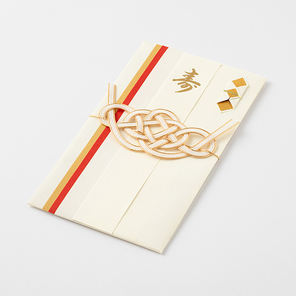 | 内容 | 1枚入(中袋付) 短冊〔寿(エンボス加工)、御結婚御祝、無地:各1枚〕 表書きと包み方解説付 金額目安:2~5万円 |