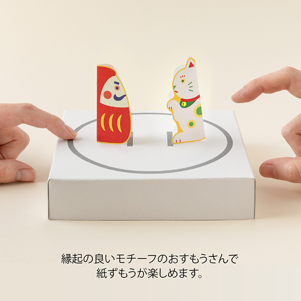 紙ずもうが楽しめるおとし玉袋 昔からの「紙遊び」がおとし玉袋になりました。ミシン目にそってキャラクターを切り取ると、紙ずもうが楽しめます。